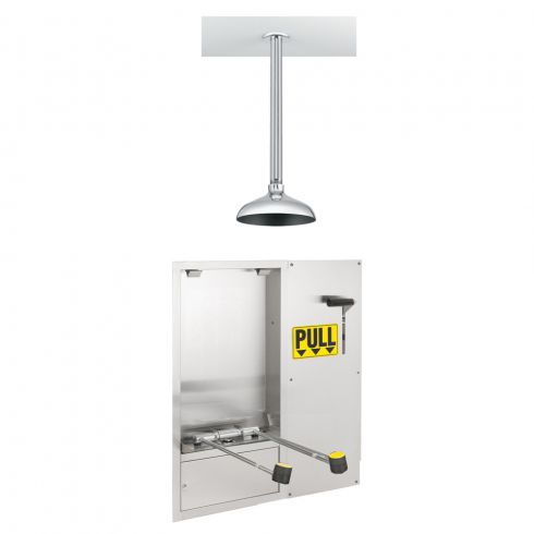 Die Speakman SE-575-DP-238 Swing Down Labor-Augen- und Notdusche ist eine wandmontierte, schwenkbare, aktivierte Einheit in einem versenkten Edelstahlschrank. Die SE-575-DP-238 verfügt über verlängerte Duschearme für die Rollstuhlzugänglichkeit und verfügt über eine Ablaufwanne zum Auffangen und Entleeren der Spülflüssigkeit. Die Einheit beinhaltet auch einen herunterklappbaren Hochleistungs-Edelstahl-Notbrausekopf mit Edelstahl-Zugangsabdeckung, der aktiviert wird, wenn der Griff heruntergezogen wird.