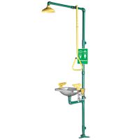 Die kombinierten Not- und Augenduschen Einheiten der Speakman Select Serie verfügen über eine kombinierte Augen-/Gesichtswäsche mit sechs belüfteten Sprays und eine rechteckige Schüssel, die auf einer DuraJade pulverbeschichteten, verzinkten Stahlstütze mit einem leistungsstarken Notbrausekopf kombiniert ist, der durch eine gut sichtbare gelbe Zugstange aktiviert wird. Die Speakman Select Serie SE-603 Notfallkombination Dusche & Auge/Gesichtsreinigung wird mit einer SE-400 Augen-/Gesichtsreinigung mit Edelstahlschale geliefert.